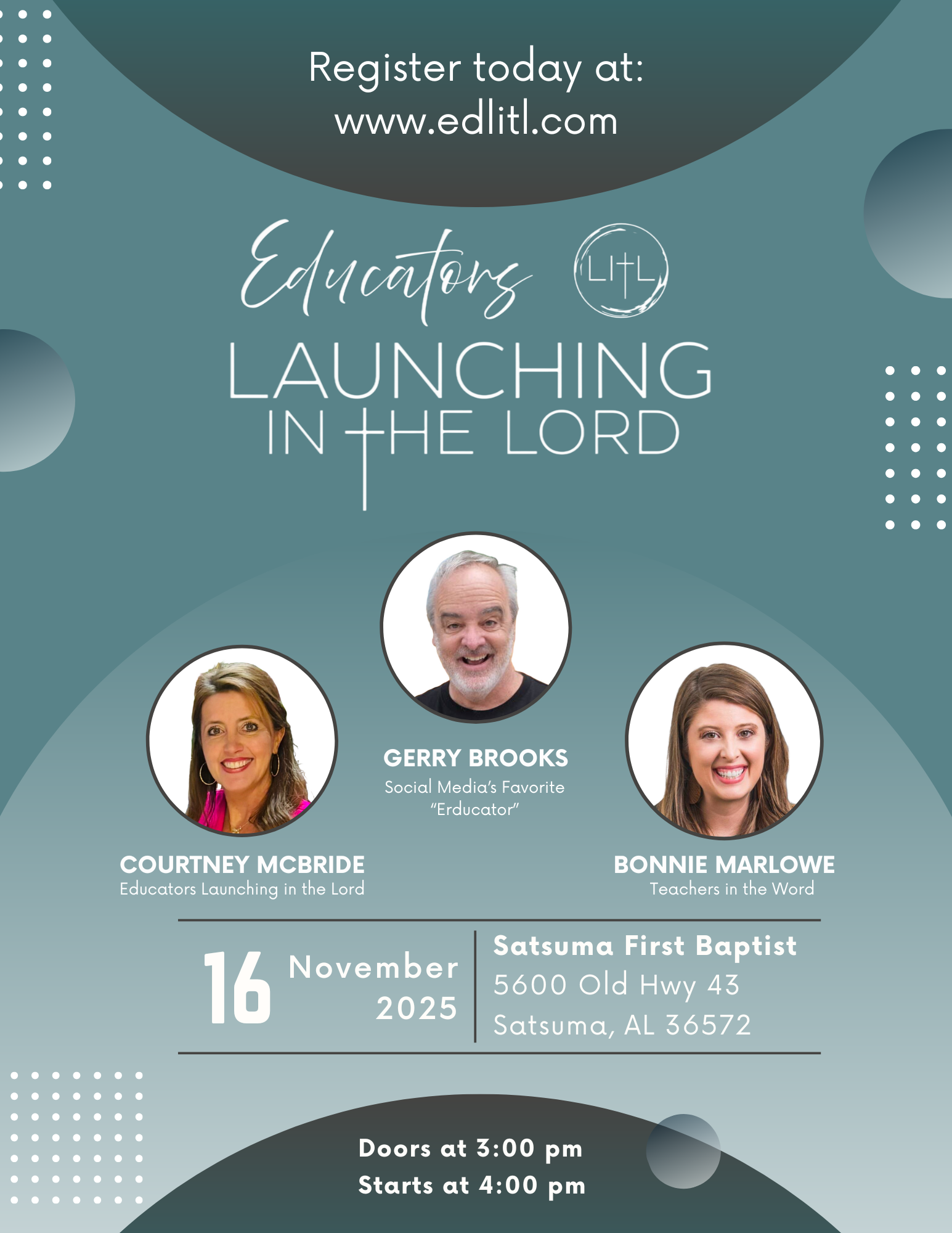 We are so excited to have the next Educators Launching in the Lord Conference happening November 16th in Satsuma, AL!